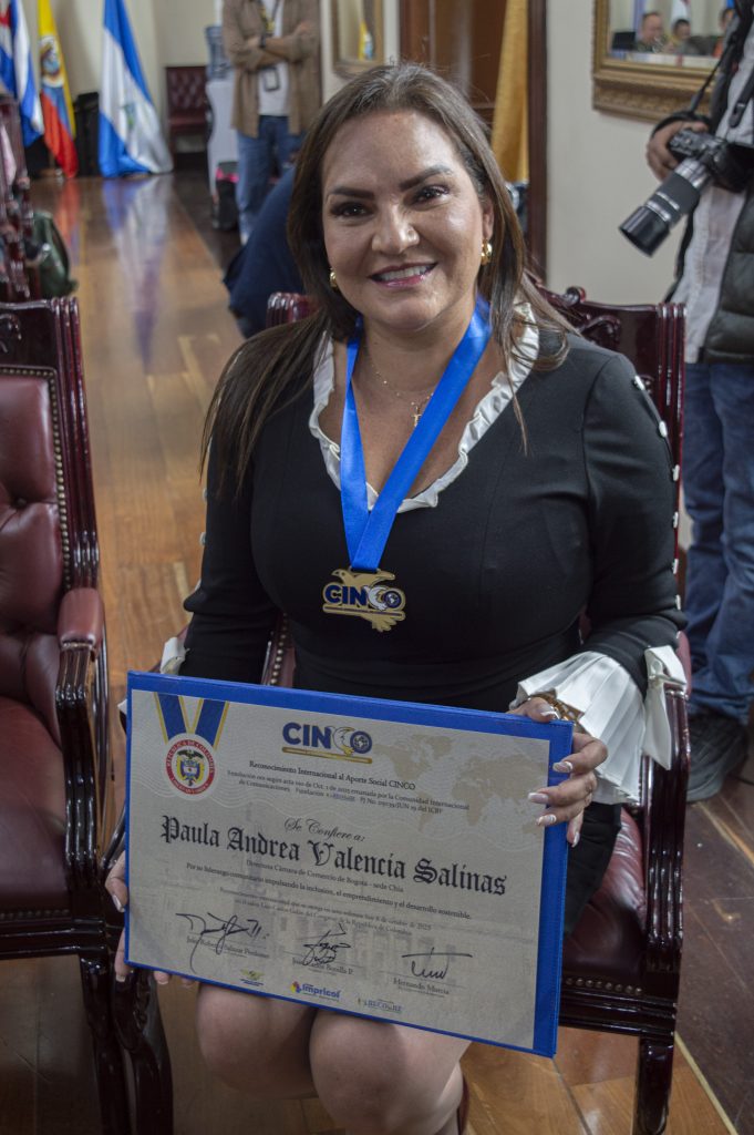 Dra. Paula Andrea Valencia Salinas – Directora Cámara de Comercio de Bogotá, sede Chía. Por su liderazgo comunitario y su impulso a la inclusión, el emprendimiento y el desarrollo sostenible.