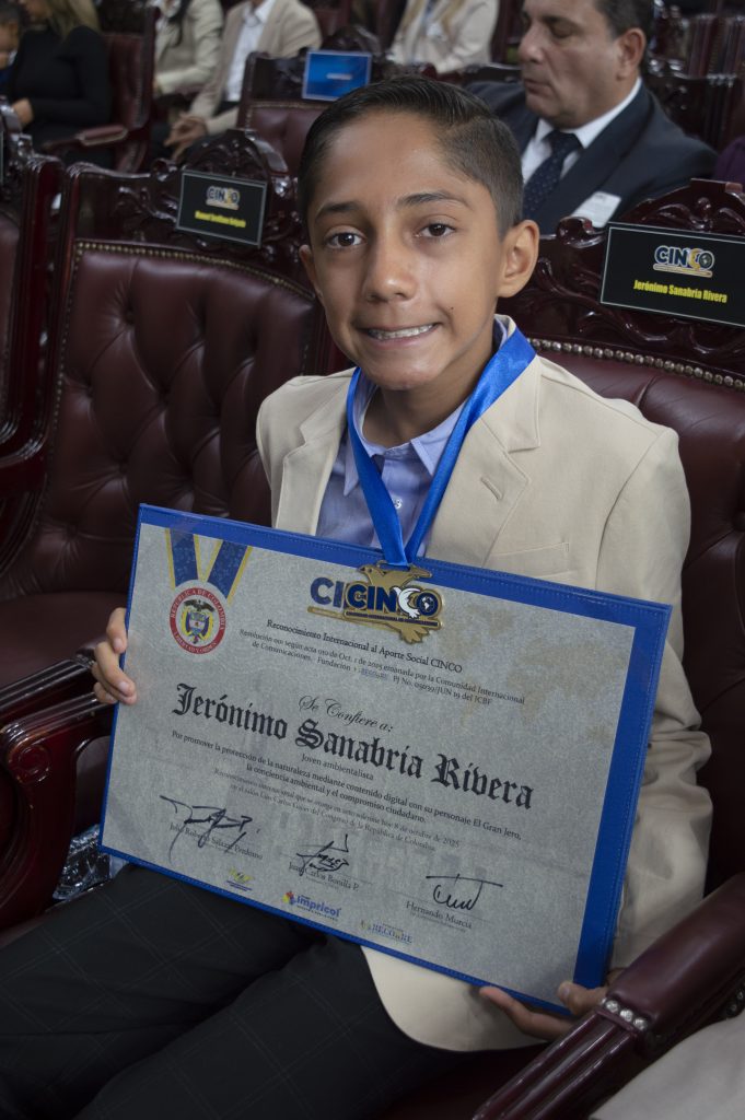 Jerónimo Sanabria Rivera – Ambientalista de Cundinamarca. Por promover, mediante contenido digital con su personaje El Gran Jero, la conciencia ambiental y el compromiso ciudadano.