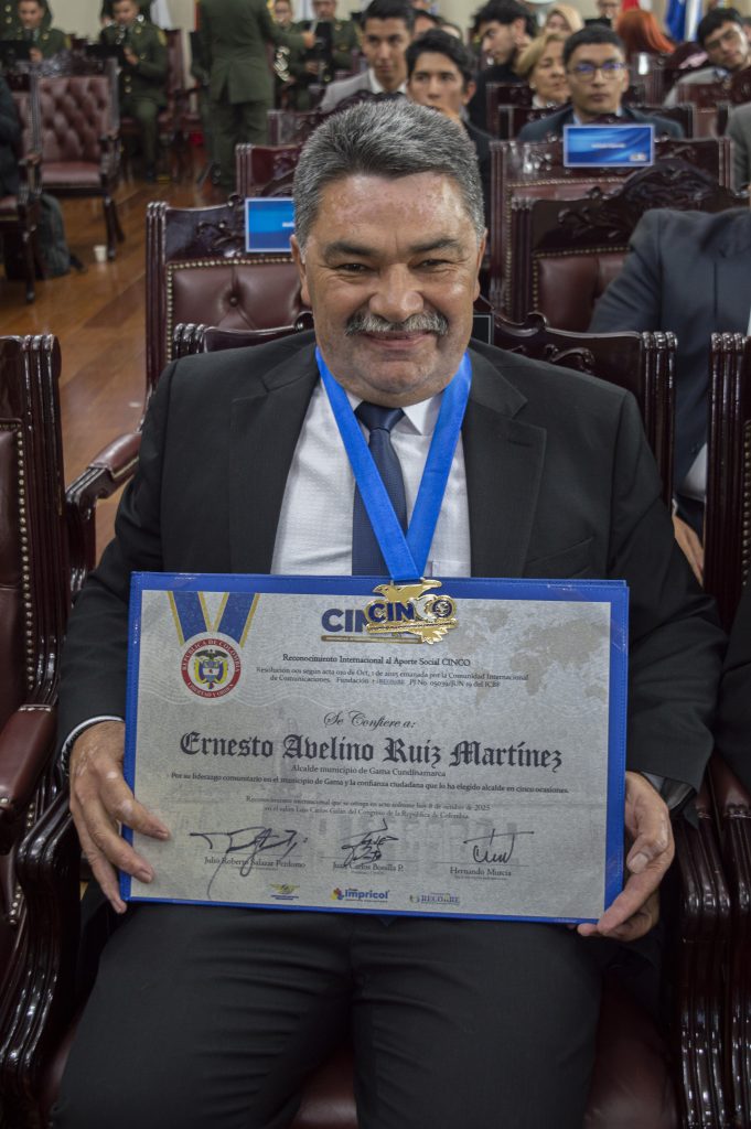 Dr. Ernesto Avelino Ruiz Martínez – Alcalde municipio de Gama Cundinamarca. Por su liderazgo comunitario en Gama y la confianza ciudadana que lo ha elegido alcalde en cinco ocasiones.