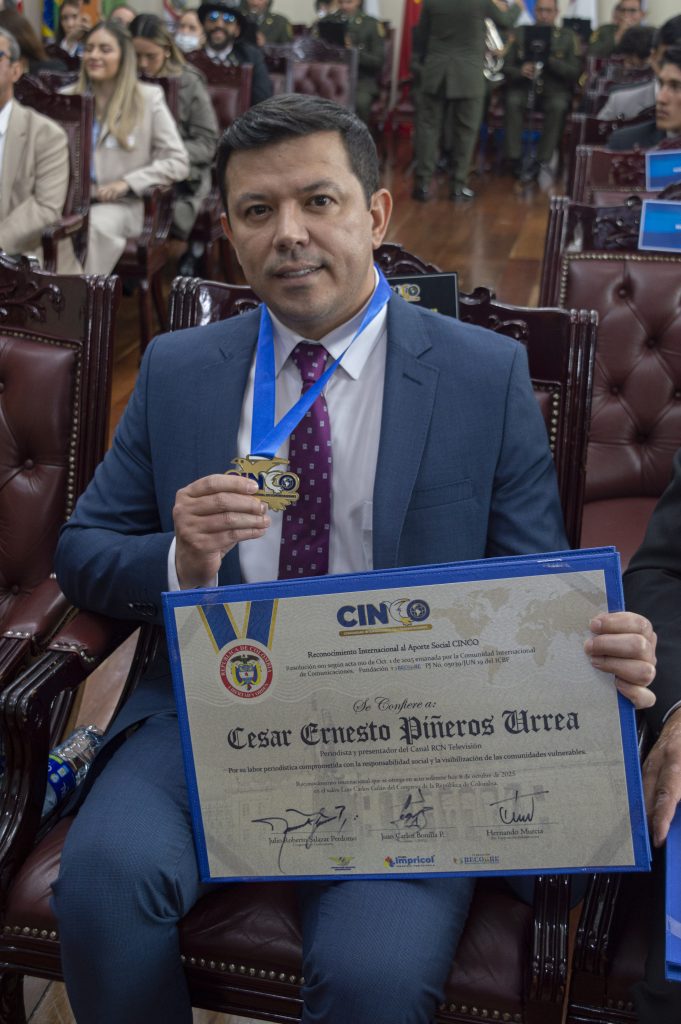 César Ernesto Piñeros Urrea – Periodista y presentador de RCN Televisión. Por su labor periodística comprometida con la responsabilidad social y la visibilización de las comunidades vulnerables.