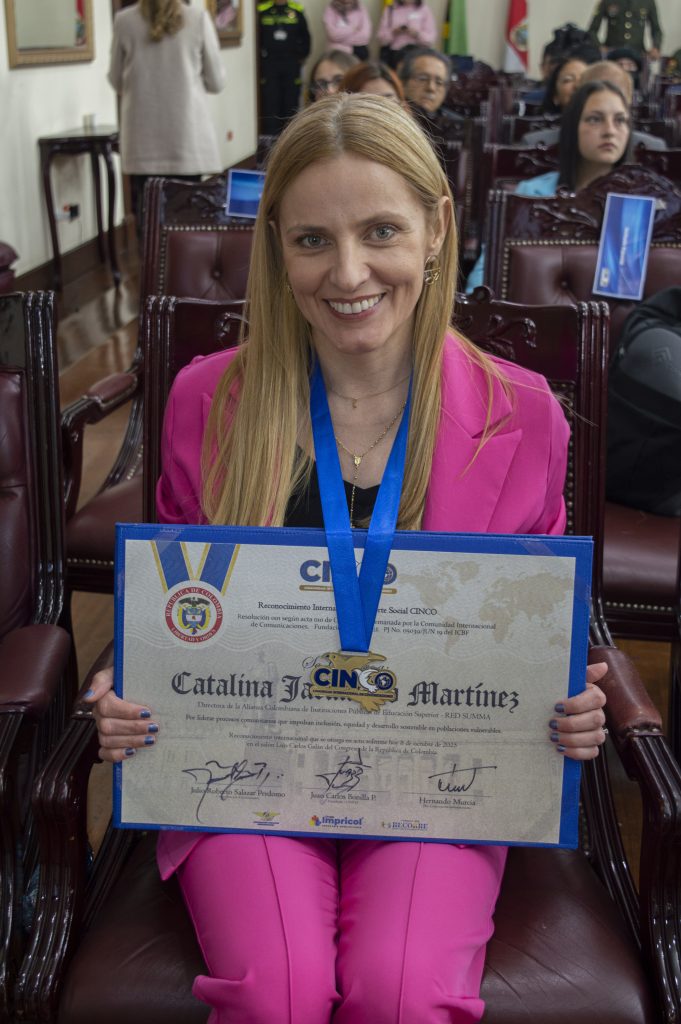 Dra. Catalina Jaramillo Martínez – Directora de la Alianza Colombiana de Instituciones Públicas de Educación Superior / Red Summa. Por liderar procesos comunitarios que impulsan inclusión, equidad y desarrollo sostenible en poblaciones vulnerables.