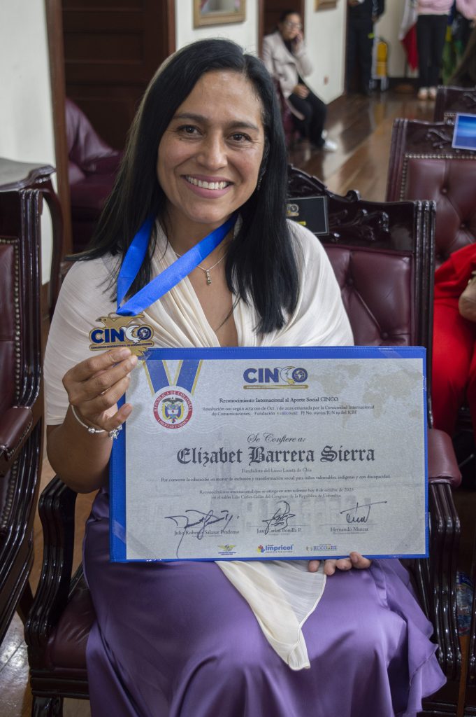 Dra. Elizabet Barrera Sierra – Fundadora del Liceo Lunita de Chía Cundinamarca. Por convertir la educación en motor de inclusión y transformación social para niños vulnerables, indígenas y con discapacidad.